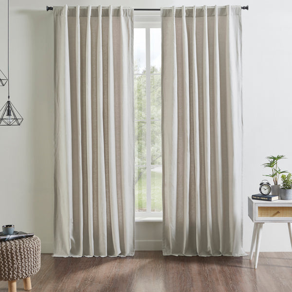 Discover the Kendall Linen Cotton Curtain Panel by abc home. Designed in a series of sophisticated neutral shades, this soft, light-filtering curtain brings timeless elegance to any bedroom, living room, or dining space. Available in Fog, Mist, Natural, Pewter, and White, as well as 84", 96", 108", and 120" sizes. Crafted in India in a beautiful linen and cotton blend.