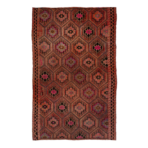 This Kilim Wool Rug - 5'8" x 9'7" is handwoven in Turkey from naturally durable wool. The color palette of natural and vibrant hues in this one-of-a-kind rug provides a sense of warmth and soul that can only come from an artisan work of art. Reversible and woven without knots, kilims are an effortless way to introduce ancient motifs and a rich feeling into a styled space, both modern and traditional alike.