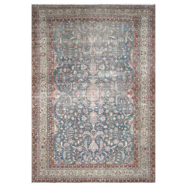 Light Blue Vintage Antique Traditional Baktiari Wool Rug - 12'3" x 17'11"