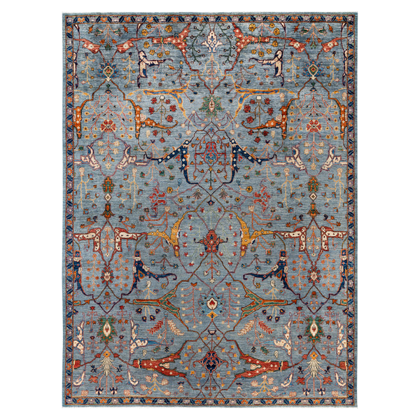 Light Blue Traditional Serapi Wool Rug - 8'11" x 11'9"