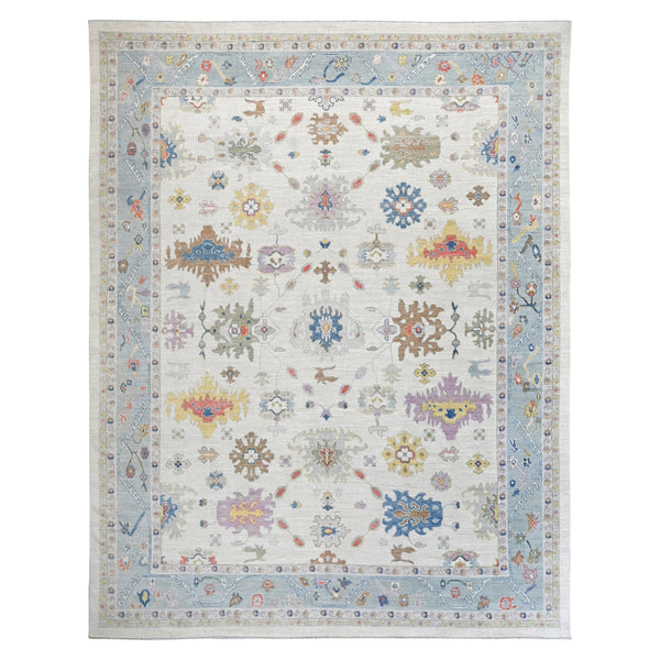 Light Blue Traditional Oushak Wool Rug - 12'9" x 14'9"