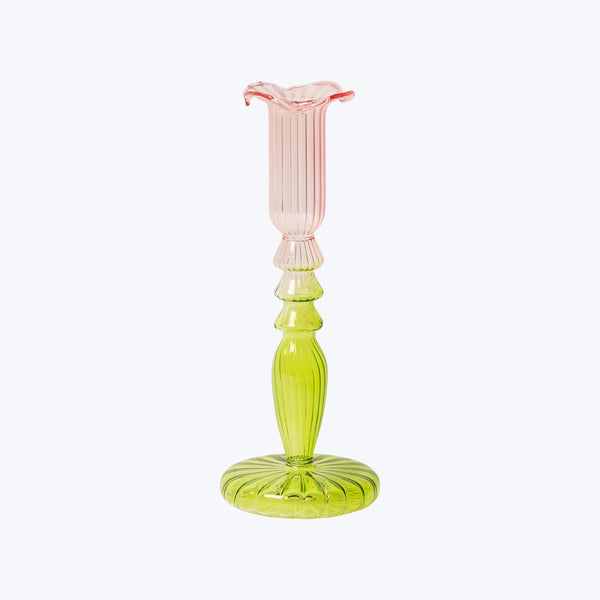 Add vibrant color to your interiors with abc home’s Lime Rosa Ombré Ornamental Glass Candlestick. Crafted in glass, this eye-catching piece features a striking lime base that gradually melds into a soft rose hue. A playful and elegant addition to any space.