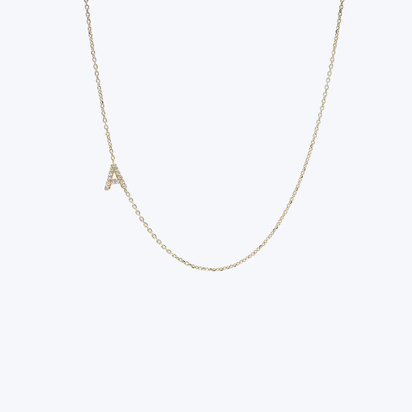 Letter measures approximately 6mm long with diamond carat weight 0.05. Necklace fastens with lobster clasp and has 1" and 2" adjustments.