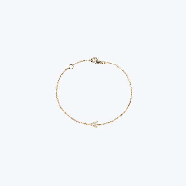 A delicate pavé set initial is soldered onto a dainty gold chain. This feminine bracelet is great for layering and fastens with a lobster clasp. Letter measures approximately 6mm long with diamond carat weight 0.05. *Not all letters pictured. From its inception, Anzie Jewelry has been a celebration of life and color. Named after its founder, Anzie Stein, this collection of fine jewelry is best known for its signature pieces using precious gemstones that bring luxury to your everyday...