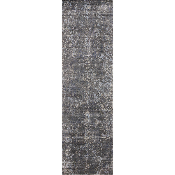 This runner, with its sleek 2'3" x 8' dimensions, captures a certain moodiness with its sophisticated grey tones. The rug reveals an intricate, abstract pattern that dances lightly across its surface in silvery whispers, delivering a narrative that shifts between modern minimalism and an echo of Tibetan artistry. It's a visual symphony of distressed elegance and contemporary edge, perfect for settings ranging from chic, clutter-free modern spaces to bohemian havens or transitional areas seeking a touch of subdued drama. The...