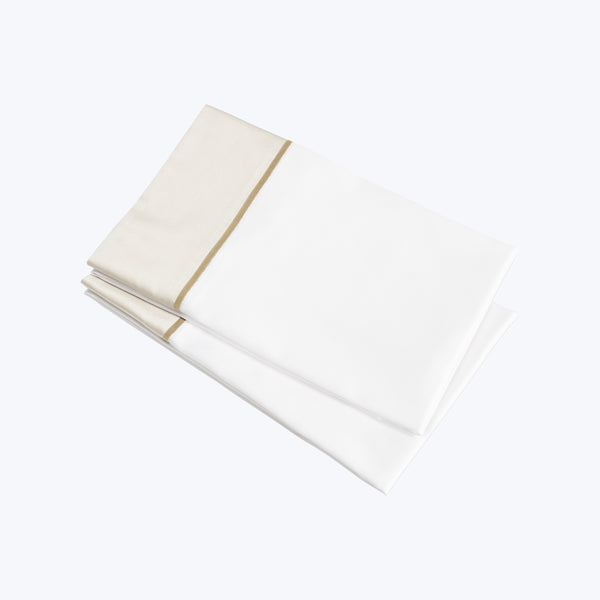 Bright and refined, the Luna Pillowcases by Signoria Firenze will elevate any bedroom. These elegant pillowcases feature a lustrous sateen border detailed with an embroidered line in complementing cerulean or taupe hues. An exquisite addition to your bedding collection. Crafted in Italy in 100% extra-long staple SUPIMA cotton sateen with a 600 t.c. Available in Standard and King sizes.