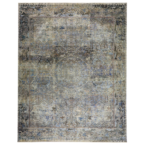 Blue & Grey Alchemy Contemporary Wool Silk Blend Rug - 11'9" x 15'1"