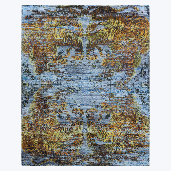 Blue & Orange Nu Vibrant Tibetan Contemporary Silk Rug - 8'1" x 10'2"