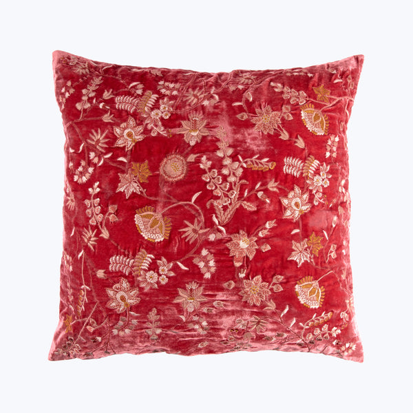 Discover the Madame Bovary Silk Velvet Pillow by Anke Drechsel. Crafted in luxurious silk velvet, this gorgeous pillow features intricate florals meticulously hand-embroidered by master artisans in India. Choose from Watermelon 24"x 24" and Corn Yellow 20"x 20"editions.