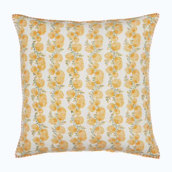 SpecificationsHand block printed, printed on both sides. Hand stitched edging in yellow. Hidden zipper closure.