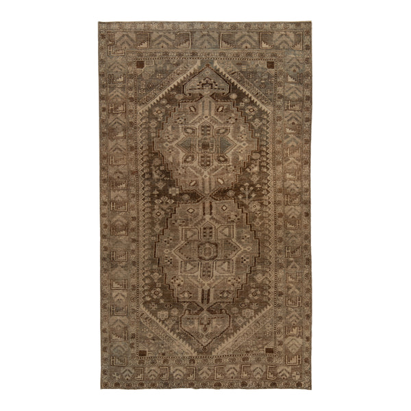 This Brown Malayer Vintage Rug - 5'2" x 9'8" is a stunning traditional rug from Central Asia. It features intricate patterns and detailing in a symmetrical layout. The earthy color scheme of varying shades of brown, tan, and beige adds a subtle touch to any interior decor style. Hand knotted out of wool, this high-quality rug showcases influences from Middle Eastern and South Asian textile traditions. Its craftsmanship and attention to detail make it a true statement piece.
