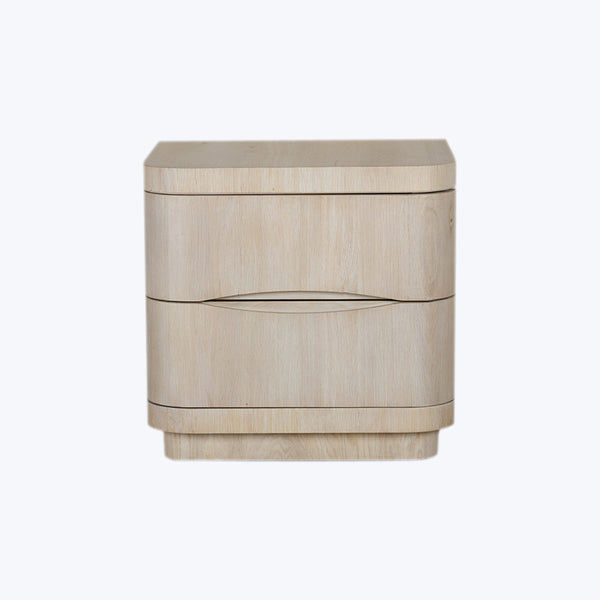Organic character meets deco design in the Mara Nightstand by Viento. Handmade in sand-finished American oak, this elegant nightstand is carved and shaped to highlight the wood’s distinctive grain and movement. No two pieces are exactly alike—subtle variations in tone, grain, and composition reflect the singular story of the tree it came from. A gorgeous piece, infused with nature’s quiet power. Style in pairs. Sustainably crafted in Mexico.