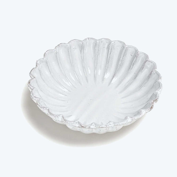 An intricate scalloped motif adds a touch of Parisian poetry to the kitchen. Handmade on the Rue St. Honore in Paris, these 18th-century inspired ceramics are crafted in a traditional pottery style passed down from generations. Hand molded from black terracotta, each piece is finished in a milky-white glaze that highlights the unique character of the clay, celebrating its imperfections and ensuring that no two pieces are exactly alike. Romantically bohemian, yet practical for every day use, they are entirely...
