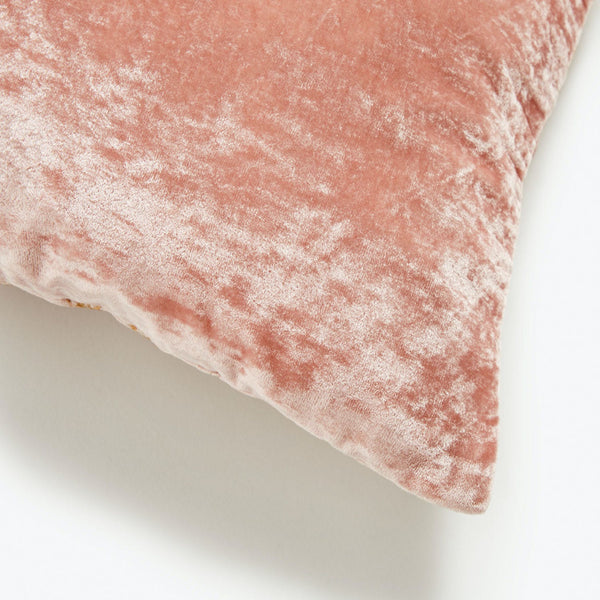 Intricate hand-embroidered golden flowers adorn rich, old rose silk velvet in a statement of divine opulence. Created exclusively for ABC, the Marla pillow weaves together the most exacting needlework in the art of embroidery with haute couture elements, bringing an heirloom quality to its setting.