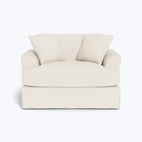 The Martha's Vineyard Chair and a Half, part of the iconic Cobble Hill collection and a customer favorite at ABC Carpet & Home, embodies timeless, laid-back elegance. Perfectly sized for solo lounging or cozying up with a loved one, this chair offers generous seating, making it ideal for lazy afternoons or casual moments of relaxation. Handcrafted in the USA with a sustainably sourced Goodwood frame, the Martha's Vineyard Chair and a Half delivers exceptional craftsmanship with an eco-conscious approach. The...
