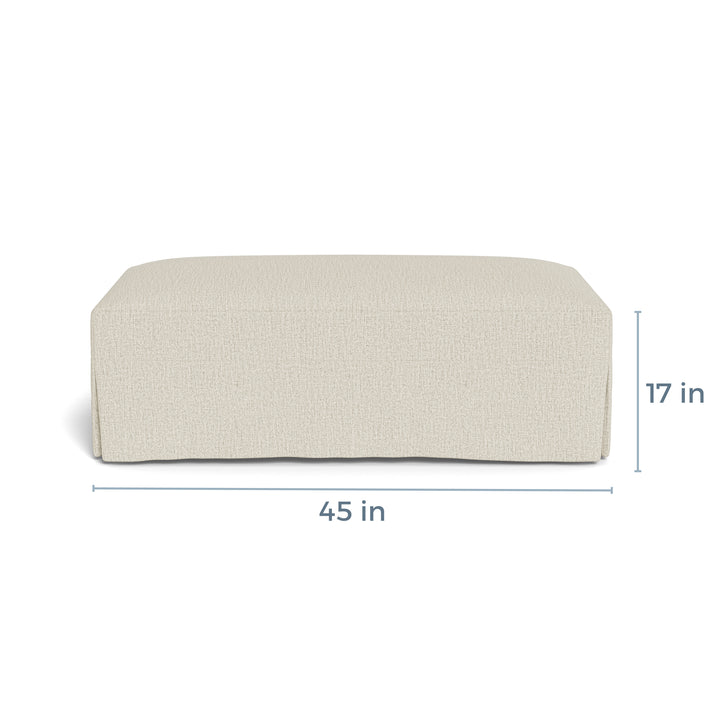 The slipcovered design enhances both the beauty and functionality of this ottoman. Slipcovers can be easily removed for cleaning or replaced to refresh your space. Available in durable cotton or linen fabrics, the slipcover can be customized to fit your personal aesthetic, whether you prefer classic neutrals or a more modern look.