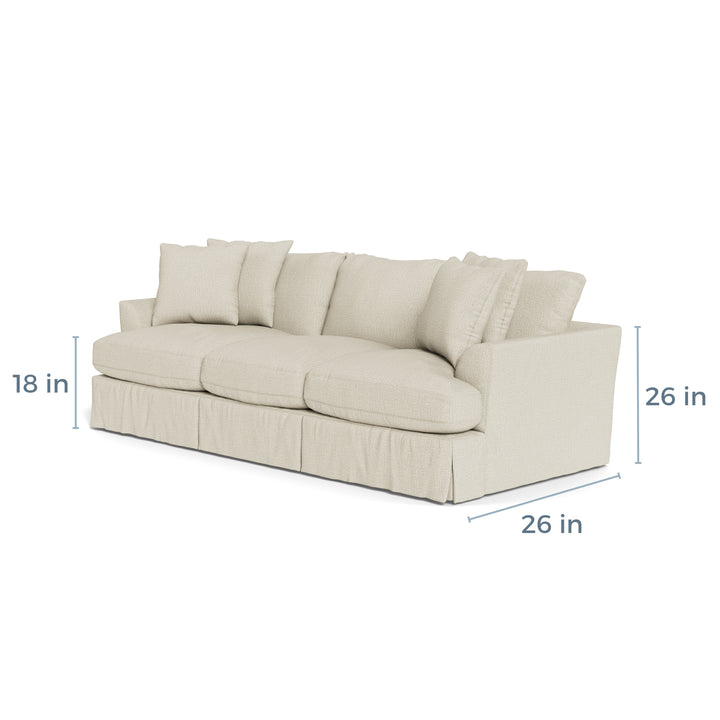 A key feature of this sofa is its slipcovered design, offering both practicality and beauty. The slipcover can be easily removed for cleaning or replaced to give your space a fresh look. Available in durable cotton and linen fabrics, the slipcover allows you to customize the sofa to suit your personal style, whether you prefer a classic, neutral palette or a more modern look.