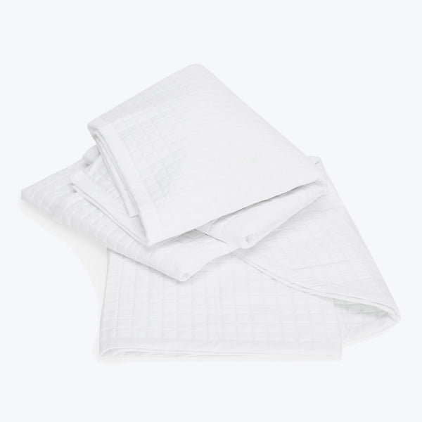 The Masaccio Quilted Coverlet combines timeless Tuscan elegance with modern functionality, crafted in Italy by Signoria Firenze. Encasing a layer of warm polyester, the 300 thread count sateen exterior is delicately overstretched with a contemporary square design, offering a soft, light, and durable feel perfect for year-round comfort. Reversing to solid cotton percale and finished with a graceful sateen border and rounded corners, this coverlet merges luxurious aesthetics with practical versatility. Available in a wide array of sophisticated colors to...