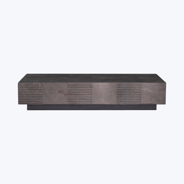 Discover the Masera Rectangular Coffee Table by Four Hands. Crafted in solid bluestone with a black oak base, this commanding coffee table provides an intriguing focal point for edgy, contemporary living spaces. The Masera Rectangular Coffee Table is detailed with a pattern of etched lines, which add captivating texture. Subtle variations may occur, due to each stone’s individual character.