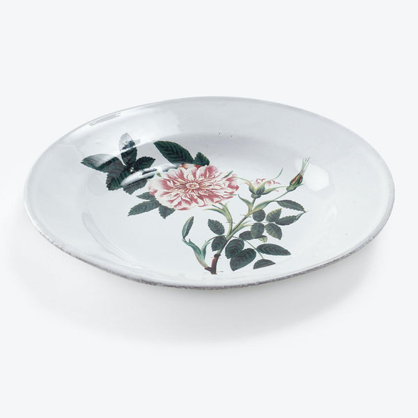 Handmade on the Rue St. Honore in Paris, these 18th-century inspired ceramics are crafted in a traditional pottery style passed down from generations. Hand molded from black terracotta, each piece is finished in a milky-white glaze that highlights the unique character of the clay, celebrating its imperfections and ensuring that no two pieces are exactly alike. Emblazoned with the iconic work of decoupage artist John Derian, this ceramic soup plate showcases the visually stimulating beauty of nature through colorful imagery.