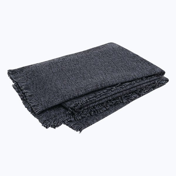 Maya is an elegant textured weave throw that features a subtle pebbled pattern and soft eyelash fringe along the edges. It's crafted in Nepal and exudes a handwoven sensibility in an ultra-luxurious, three-ply blend of cashmere and silk across its range of elegant hues.