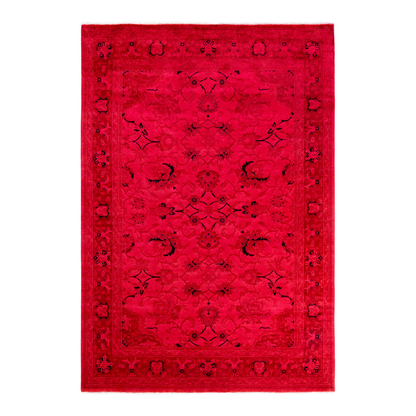 This Color Reform Rug epitomizes classic design with a twist — traditional rug designs overdyed in a vibrant red color for an upcycled second life. Each hand-knotted rug is washed in a 100% natural botanical dye that reveals hidden nuances amongst the intricate designs. These one-of-a-kind rugs transcend trends, and their sturdy construction ensures that they'll withstand years of heavy traffic.