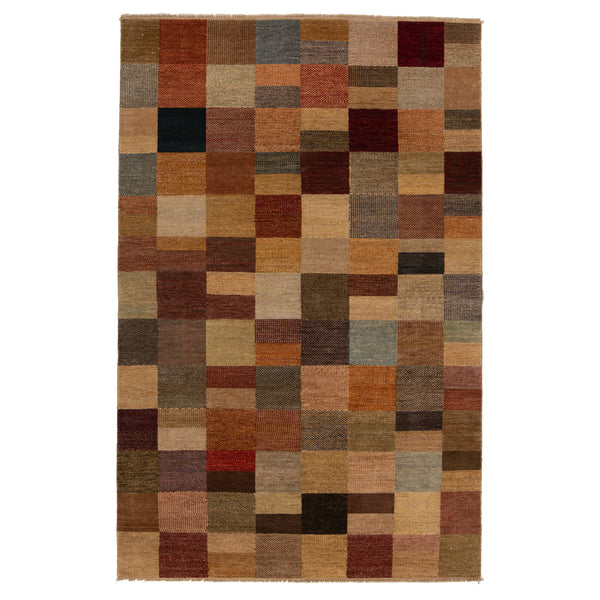 This Checkered Geometric Modern Wool Rug 6'1" x 9'2" is expertly hand-knotted in India from durable wool for a long-lasting piece of one-of-a-kind character for your home. This modern rug is the epitome of elegance with a grid design in a variety of neutral hues. This 6x9 checkered rug is a captivating centerpiece that will elevate your bedroom, living room, or dining room with its contemporary charm and luxurious feel.