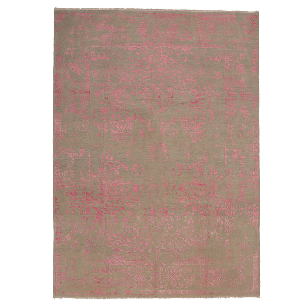 This Pink Distressed Traditional Wool Rug - 9'1" x 12'8" is expertly hand-knotted in India from durable wool for a long-lasting luxury rug with one-of-a-kind character for your modern home. This transitional rug is the epitome of elegance with a distressed pink high-low medallion design overlayed on a neutral beige background. This 9x12 rug is a captivating centerpiece that will elevate your bedroom, living room, or dining room with its romantic charm and luxurious feel.