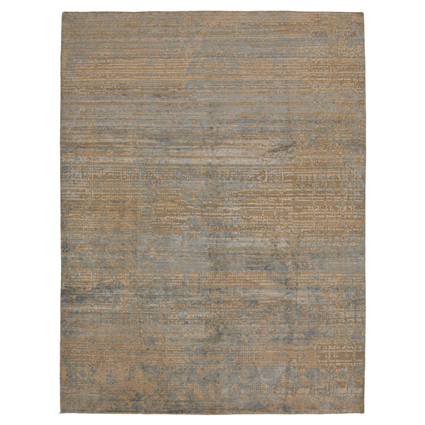 Expertly crafted in India, this Brown Modern Wool Rug - 8'2" x 10'3" is hand-knotted from durable wool for a long-lasting piece of one-of-a-kind character for your modern home. This distressed modern rug features a traditional geometric motif in gold and beige with an abstract design overlayed in shifting shades of grey. Incredibly captivating, this 8x10 modern rug is a high-quality centerpiece that will elevate your space with its artistic flair and luxurious feel.