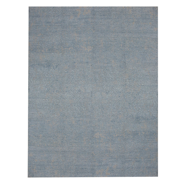 This Blue Modern Wool Rug 9'1" x 11'10" is expertly hand-knotted in India from durable wool for a long-lasting piece of one-of-a-kind character for your modern home. This modern rug is the epitome of elegance with its ombre blue high-low design overlayed on a neutral grey background that shifts as you walk around it. This 9x12 rug is a captivating centerpiece that will elevate your bedroom, living room, or dining room with its romantic charm and luxurious feel.