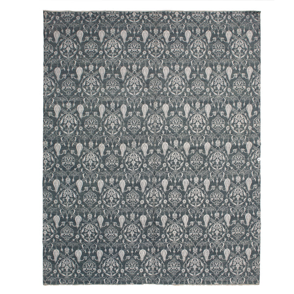 Indulge in the vintage allure of this Grey Vintage Mosaic Wool Rug 12' x 14'8"'.This one-of-a-kind geometric rug is made from premium durable wool and filled with timeless charm courtesy of its repeating decorative floral motif in neutral grey-blue hues. Reminiscent of traditional mosaics, this oversized rug offers a mesmerizing visual impact in your living room, dining room, or bedroom.