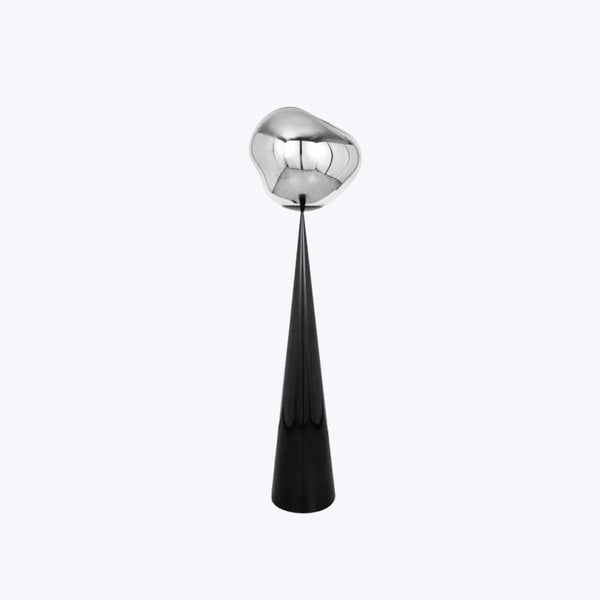 Melt is evocative of molten glass, the interior of a melting glacier or images of deep space. An imperfect, organic and naturalistic light that produces a mesmerizing hot-blown glass effect. Melt is created through a process of blow moulding and vacuum metallisation to achieve melted orbs with abundant and unusual luminosity. Here the orb sits on a cone shaped base creating a striking silhouette.
