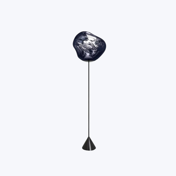 Melt is evocative of molten glass, the interior of a melting glacier or images of deep space. An imperfect, organic and naturalistic light that produces a mesmerizing hot-blown glass effect. Melt is created through a process of blow moulding and vacuum metallisation to achieve melted orbs with abundant and unusual luminosity. Here the orb elegantly rests on a slim base.