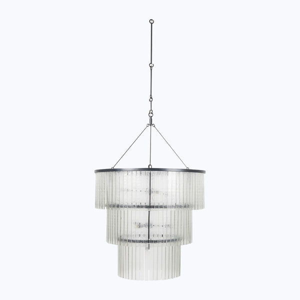 Add old-world elegance to your space with the Meredith Large Chandelier by Four Hands. Featuring a cascading drum design of textured glass, this stunning chandelier is topped with a jewelry-inspired chain in an antique iron finish. Expertly crafted in India.