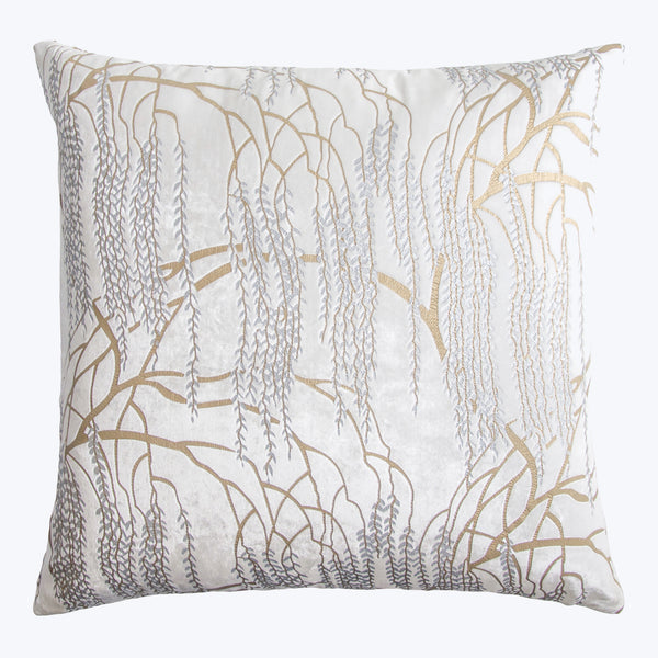 The Willow Metallic Velvet Pillow features a whimsical and elegant foliage pattern that adds an elegant touch to any room. Our metallic pigment prints add a new dimension to lustrous velvet. This design began in Kevin's sketchbook, was printed on silk velvet, then hand-painted in small batches by artisans in Philadelphia. Variations in color are part of the nature of our unique dying process that is applied by hand in layers on the soft velvet surface. Includes (1) silk velvet...
