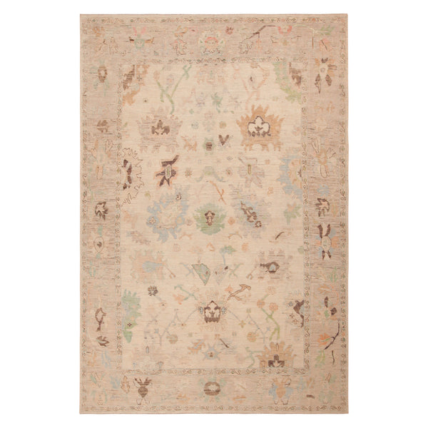 Masterful craftsmanship and strong antique quality make this Multicolored Modern Wool Rug - 9'3" X 13'5" a truly unique piece. A neutral color palette with highlights of blues and browns is married with a distressed traditional floral motif for an intriguing visual presentation on your floors. Hand-knotted from durable wool by skilled artisans, this is a dream area rug for living rooms and bedrooms in need of an elevated and sustainable centerpiece. Bring home timeless warmth with the Zameen Collection,...