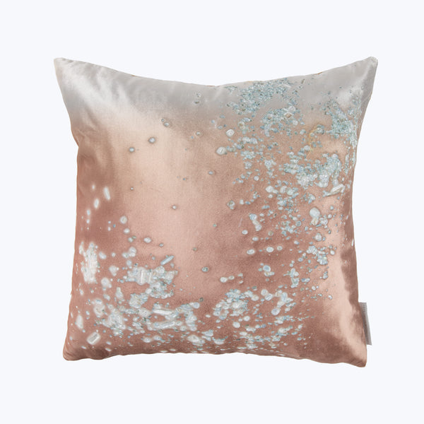 The Mineral Ombre Glow Ivoire Pillow by Aviva Stanoff features an elegant ombre design sprinkled with a mineral-inspired pattern, adding interest and texture. Crafted in Stanoff’s signature silk velvet and hand-painted in her California studio, this refined decorative pillow exudes artisanal luxury. A stunning statement addition to any space.