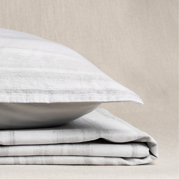 Discover the Mirage Duvet, Silver by Kevin O’Brien Studio. Featuring painter-like strokes in a sophisticated natural palette, this elegant duvet brings timeless refinement to any bedroom. Crafted in Portugal in OEKO-TEX®-certified BCI cotton.