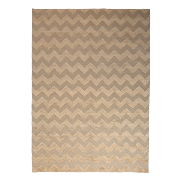 A 10' x 14'3" beige wool rug doesn't just exist in a room—it defines it. Its modern design, a sophisticated dance of chevrons, plays with natural beige and warm taupe, adding depth to any space without being overbearing. It's the kind of rug that seamlessly blends with a room's character, whether it leans towards sleek contemporary or embraces a softer transitional vibe. Crafted from 100% wool, this piece isn't just about appearances. Wool's natural resilience is legendary—soft underfoot, inherently resistant...