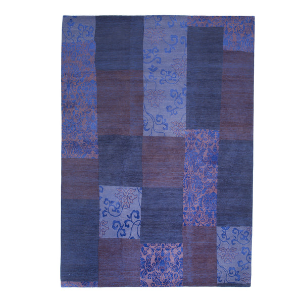 This 10' x 14'2 purple patchwork rug is a statement piece that turns heads and sparks conversations. Imagine a dance between bold innovation and timeless artistry, each thread hand-knotted by skilled artisans in Nepal. The sheer size of it transforms a space, grounding a room while infusing it with personality and life. The materials tell a tale of luxury without shouting. A finely tuned blend of wool and silk, this rug merges the best of both worlds: the sturdy, inviting...
