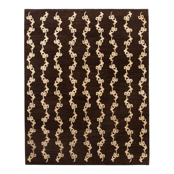 Brown Nu Vibrant Modern Tibetan Wool Silk Blend Rug - 8' x 10'
