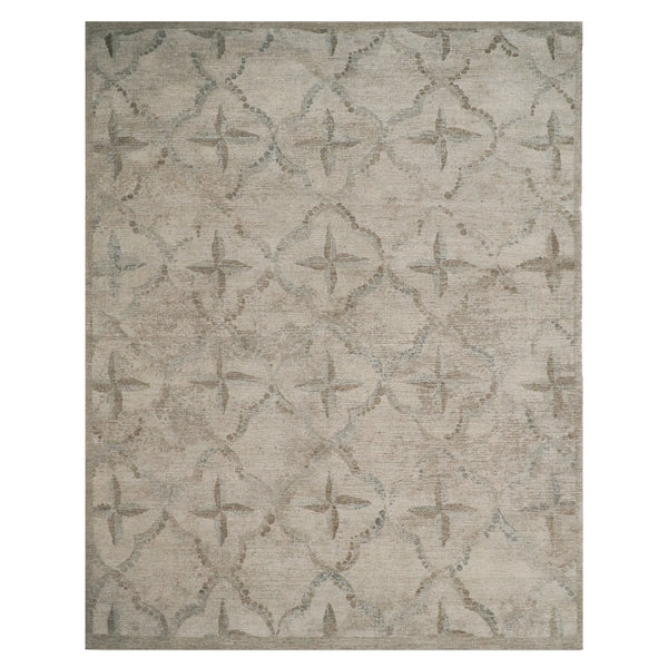 Enhance your space with the Beige Modern Silk Rug - 8' x 10'3". This hand-knotted contemporary rug from India features a traditional pattern in muted beige and gray tones. The high-quality 100% silk material and borderless design create a luxurious and sophisticated look for any room.