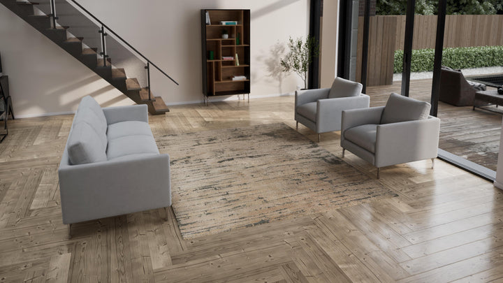 With its striking dimensions, this rug defines spaces in living rooms, dining areas, or expansive bedrooms with ease. Its sophisticated interplay of color and texture harmonizes with styles from minimalist to industrial, making it versatile enough for any interior ambition. More than a mere accessory, it is a statement of sophistication and warmth. This rug doesn't just cover the floor; it enhances the atmosphere, whispers of artistry, and enriches your home with its depth and gentle luxury.