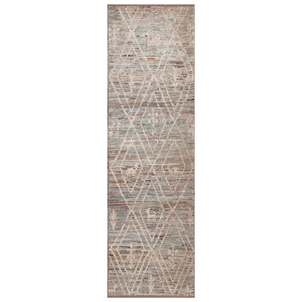 Blue & Brown Zameen Modern Wool Runner - 3'5" x 11'5"