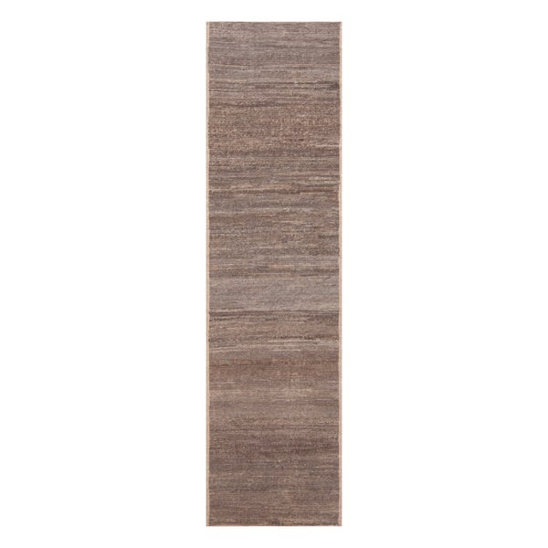 The Brown Zameen Modern Wool Runner, measuring 3'4" x 12', features a contemporary design. This runner is hand-knotted in India using natural wool fibers, a construction method that ensures durability and showcases skilled craftsmanship. The design incorporates a multi-tonal brown palette with subtle linear variations. These tonal shifts create a textured visual effect, giving the runner a natural and organic aesthetic. This approach allows the runner to integrate into modern, minimalist, or transitional interior styles. The wool material provides a...