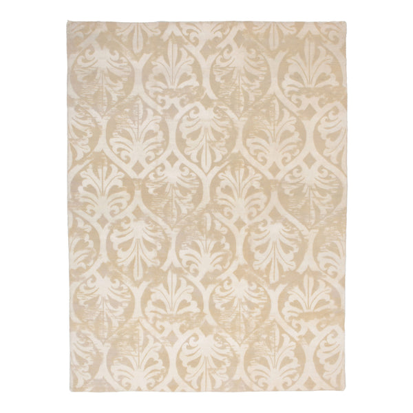Bold in its simplicity yet profound in detail, the Ivory Contemporary Wool Bamboo Silk Blend Rug stands as a statement of understated elegance. This 8'10" x 11'10" masterpiece doesn’t just occupy space; it transforms it. Hand-knotted in the artisanal workshops of India, it embodies a legacy of unparalleled craftsmanship. Its ogee trellis pattern, with stylized botanical motifs, whispers sophistication. The ivory tones wash over the room, calming and yet deeply engaging with their subtle variations and a distressed finish that...