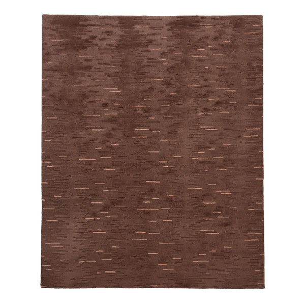 Appearing solid at first put full of geometric charm upon closure inspection, this Modern Wool & Viscose Rug - 7'11" x 9'10" features a subtle striped design in a rich brown and pink tones. This one-of-a-kind rug is hand-knotted from wool and viscose.