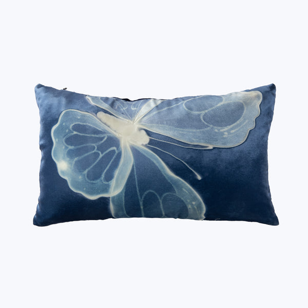 The 12" x 20" Monarch Twilight on Twilight Lumbar Pillow is a captivating piece crafted by hand using Aviva Stanoff's signature techniques. This pillow features oversized butterflies pressed into silk velvet, creating a striking display of vivid color in a twilight blue and ivory design. Each pillow is a unique work of art, with no two being alike. Inspired by a delicate natural aesthetic, this handmade pillow evokes a sense of balance and tranquility, reflecting the beauty and serenity of...