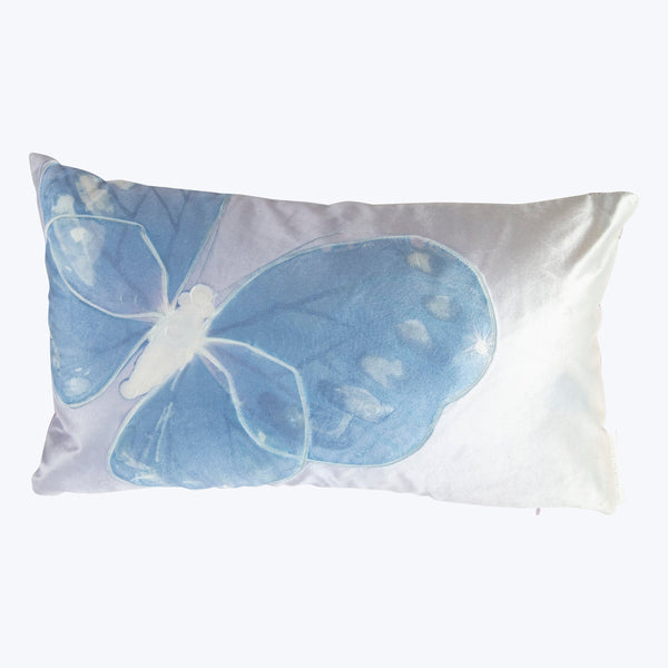 The Monarch Ombre Amethyst Ivoire Lumbar Pillow is a stunning work of art, handcrafted using Aviva Stanoff's signature techniques. Made from luxurious silk velvet, this 12” x 20” pillow showcases oversized butterflies pressed into the fabric, creating a mesmerizing ombre effect that transitions from deep amethyst to soft ivory. The vivid blue and purple hues blend harmoniously, evoking a sense of natural balance and tranquility inspired by the beauty of the earth.Each pillow is a unique creation, ensuring no two...