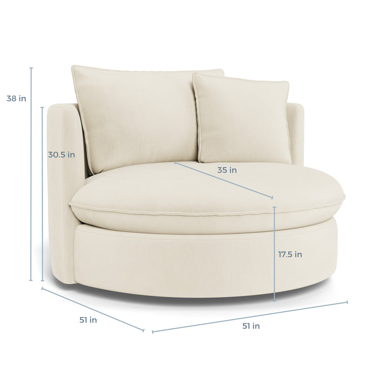 Handmade in the USA, the Montauk Round Swivel Chair showcases the finest craftsmanship. Pair it with other pieces from the Montauk collection—such as the sectional, ottoman, or lounge chair—to create a cohesive and inviting living area that reflects your style and offers ultimate comfort. Whether used as a statement chair or a cozy corner retreat, the Montauk Round Swivel Chair brings both modern luxury and timeless appeal to your home.